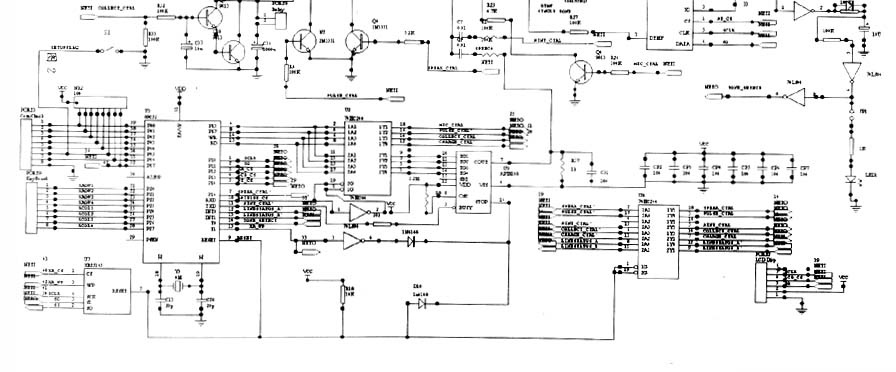 開關(guān)切換電路主要由三極管Q1、Q2構(gòu)成,從單片機擴展口送出的脈沖信號加到R6上,經(jīng)過N2驅(qū)動三極管Q2和Q1,可控制電話通路的通與斷?! 〗釉陔娫捦饩€之間的反極性信號檢測電路由R41、R42及D5、D6組成,該電路的功能是接收判別交換機送來的收費信號(被叫摘機信號),并送出收費控制脈沖。我國規(guī)定交換機送出的收費信號大體為兩種:一種為反極性信號,它是一種直流信號,利用改變投幣電話機用戶線饋電電壓極性來實現(xiàn)的;另一種為16KHz脈沖信號,它是持續(xù)時間為150ms左右的正弦脈沖信號,幅度要求在70mv左右。本機使用反極性信號使CPU送出收幣驅(qū)動信號和收幣控制信號。該電路從電話外線上取出反極性信號,并在D5、D6的正極上取得后直接送CPU(12)(13),然后再由單片機擴展口送出收幣控制信號到Q9基極,送硬幣檢測信號到Q8的基極?! ∈諑趴刂齐娐酚蒕7、Q8和部分電阻組成,它受到硬幣檢測信號的控制。收幣驅(qū)動電路由Q9、Q10和PORT8特種繼電器組成。收幣電路的作用是根據(jù)要求驅(qū)動收幣機構(gòu)收取投入到電話機中的硬幣,使停置于幣道中的硬幣進入幣盒之中,該電路是這樣進行工作的。在平時,由于Q8基極得到高電位,Q8、Q7導通,使PORT8線圈中有很小電流通過,并對C36進行充電,由于市話線路電流大約在十幾mA左右,這時PORT8繼電器不能動作(C36是一個1000μF的大電容)。而當Q9基極收到CPU送來的收幣信號時,它馬上導通,使Q10導通,這時C36迅速通過PORT8繼電器線圈和Q9、Q10進行放電,由于放電電阻很小,使PORT8繼電器線圈得電,繼電器動作,完成自動投幣。當硬幣滑落幣道后,PORT8繼電器恢復初始狀態(tài)。C36又重新進行充電。 另外,當通話時間快到了,投幣電話機會自動開始語音提示,如果主叫要延長通話時間,則需再投入硬幣,電話機要進行第二次收幣,由于此時交接機不會再產(chǎn)生收費控制脈沖,本機是通過單片機自動產(chǎn)生模擬收幣信號,使收幣機構(gòu)工作,完成第二次收幣。同時語音提示由專用語言模塊產(chǎn)生,送通話電路提示用戶。 本機通話電路集成塊采用的是TEA1110A專用話機通話集成電路。在一片芯片內(nèi)包含有通話電路所需要的全部電路和撥號接口電路,撥號方式與通話方式之間的轉(zhuǎn)換由電子開關(guān)完成,下面列出TEA1110A出腳主要功能,以利于分析電路: IR:受話放大器輸入腳,SLPE:斜率調(diào)節(jié)腳(直流電阻調(diào)節(jié)腳),MUTE:靜噪輸入腳,DTMF:雙音多頻信號輸入腳,REG:穩(wěn)壓器去耦腳,GAR:受話放大器增益調(diào)節(jié)腳,OR:受話放大器輸出腳,MIC:(+,-)送話放大器正、反輸入腳,LN:正線路腳。 這里重點介紹兩個出腳的功能:第一為MUTE靜噪輸入腳,它用來控制通話電路的工作狀態(tài)。如果靜噪輸入腳接高電平,則發(fā)送通路的電子開關(guān)把DTMF信號接到發(fā)送放大器的驅(qū)動級,同時把送話輸入放大器和接收輸入放大器斷開,此時通話電路處于雙音多頻發(fā)號狀態(tài),如果是脈沖撥號,則DTMF端無信號輸入,整個通話電路被靜噪。如果靜噪腳(M)處于低電平或懸空,電子開關(guān)把發(fā)送輸入放大器和接收輸入放大器接通,此時電路處于通話狀態(tài),可以進行正常通話。第二為DTMF雙音多頻輸入腳,在雙音頻發(fā)號期間,從該腳送入雙音頻信號,該腳信號來自于撥號集成塊HT9200A(7)腳,經(jīng)過通話集成塊處理后,一路從LN腳送出,送往線路,它的電壓放大增益為26dB,另一路經(jīng)過塊內(nèi)衰耗器送到OR腳受話器,由于該信號的電平很低,所以在受話器中可以聽到輕微的撥號確認音。另外,變換R20的大小可以改變受話放大器的增益大小,從而改變受話器的音量?! ”緳C的發(fā)號電路采用的是HT9200A專用撥號集成電路。投幣電話機的撥號方式與普通電話機一樣,可以是直流脈沖,也可以是雙音頻。所不同的是投幣電話機的撥號條件有兩個:一是摘機,二是要投入足夠的硬幣,只有在這兩個條件同時具備后,按鍵才能有效,電話機才能發(fā)出撥號信息。HT9200A撥號專用集成塊的輸入腳同時輸入由CPU輸出送來的收幣檢測信號、摘機信號和用戶撥打的號碼,并轉(zhuǎn)化成雙音頻信號送往外線?! ”就稁烹娫挋C各電路均由單片機控制處理協(xié)調(diào),其中CPU的型號為89C52。與CPUP00~P07腳相連接的是硬幣檢測電路端口,與CPUP20~P27腳相連接的是話機按鍵電路端口,CPU通過輸入輸出擴展端口可以與相應電路進行連接,它們是:(1)控制語言模塊(U9 AP18108)產(chǎn)生告警音、語言提示音、及各種音樂等等,從U9第(7)腳輸出送往U6(TEA1110A的IR腳)。注意當從語音模塊U9送出語音信號時,通話集成電路U6內(nèi)部受話放大器工作,接在U9第(12)上的受話器能聽到語言聲,但我們不希望該語言信號送往電話外線,所以在通話集成電路U6的IR腳上接有由Q5、Q6組成的語音隔離電路。Q6基極從CPU輸出端得到高電平,即Q6、Q5導通,使Q5射極對地短路,從而保證語音信號無法送外線。(2)CPU同時通 過擴展模塊74HC244驅(qū)動液晶顯示模塊工作,顯示本·65·投幣電話機的工作狀態(tài),可提供直觀的人機界面。(3)CPU通過擴展模塊能及時調(diào)用存貯器中的所有數(shù)據(jù)。該存貯器的信號為U7 XR25165,在它內(nèi)部存貯有長話、農(nóng)話、市話等費率信息內(nèi)容,供CPU隨時調(diào)用外理?! ”就稁烹娫挋C還設(shè)有撥號音檢測電路,它是由專用撥號音檢測集
