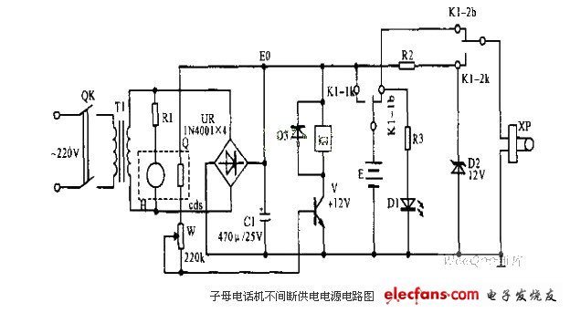 以下是子母電話機不間斷供電電源電路圖的介紹與說明: