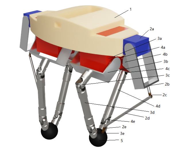 1-基礎(chǔ)部分,2a 3a 4a-驅(qū)動(dòng)裝置(大扭矩舵),2b 3b 4b-主動(dòng)桿(舵架)