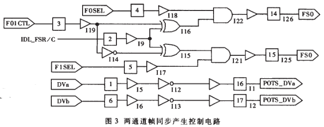 D/A轉換:解碼器PCM數(shù)據(jù)流轉換成模擬信號,輸出放大器單端輸出語音信號RCV,它能驅動2000Ω的負載。 (3)FS譯碼器:由于T8503具有雙通道,且各有自已的同步信號,同步信號不能同時有效,需相差一個或多個時隙、所以要將U接口送來的FS信號一分為二成FS0、FS1兩同步信號,分別作為通道0和通道1的同步信號。FS譯碼器由一可編程邏輯器件GAL16V8D來實現(xiàn),具體電路如圖3所示。