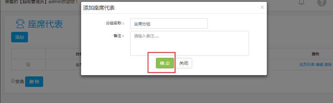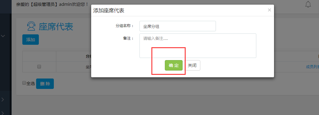 如下圖:點(diǎn)擊右上角的“添加”按鈕,彈出添加框,填寫“分組名稱”和“備注”后點(diǎn)擊“確定”按鈕即可。
