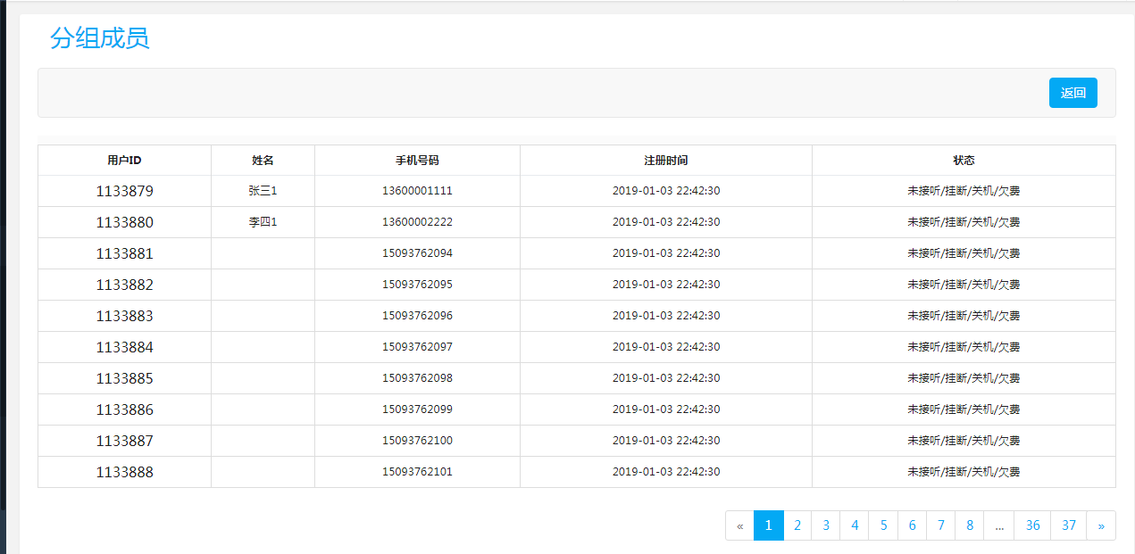 如下圖,點擊列表里面的“分組成員”按鈕,頁面就跳轉到分組成員列表頁,查看分組成員