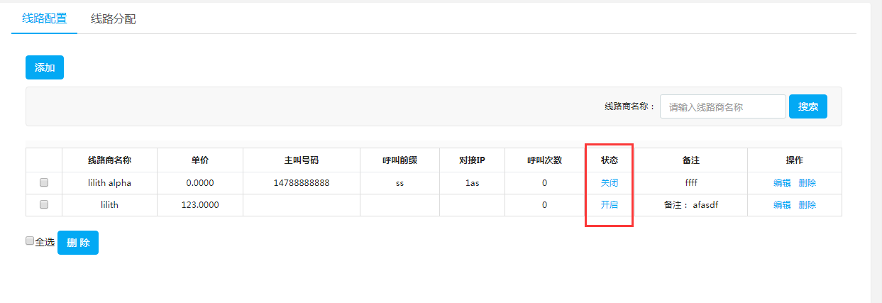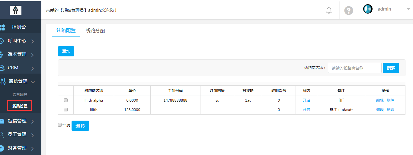 右側(cè)菜單-線路管理,點(diǎn)擊進(jìn)入線路管理下的線路配置界面