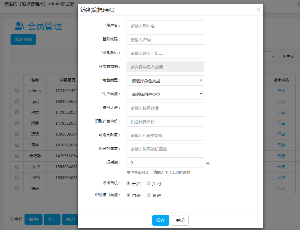 單擊“添加會員”按鈕,彈出添加會員對話框,填寫個人基本信息后,點擊“保存”按鈕即可。