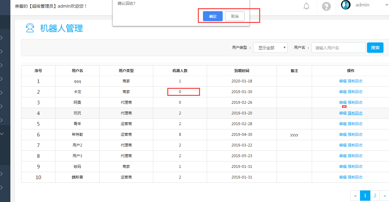 如下圖,點(diǎn)擊“強(qiáng)制回收”關(guān)鍵字即可。就是把分配給該賬戶的機(jī)器人強(qiáng)制回收