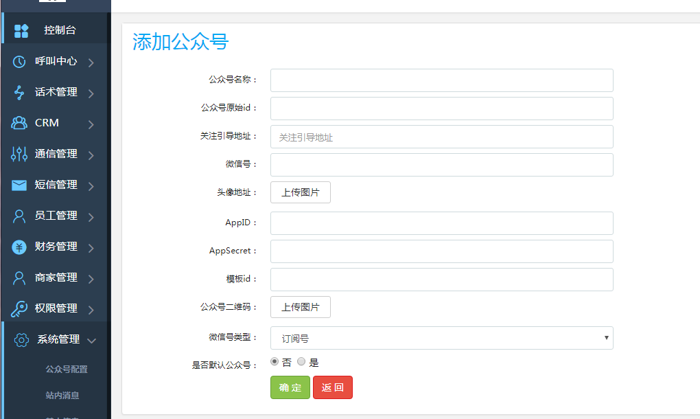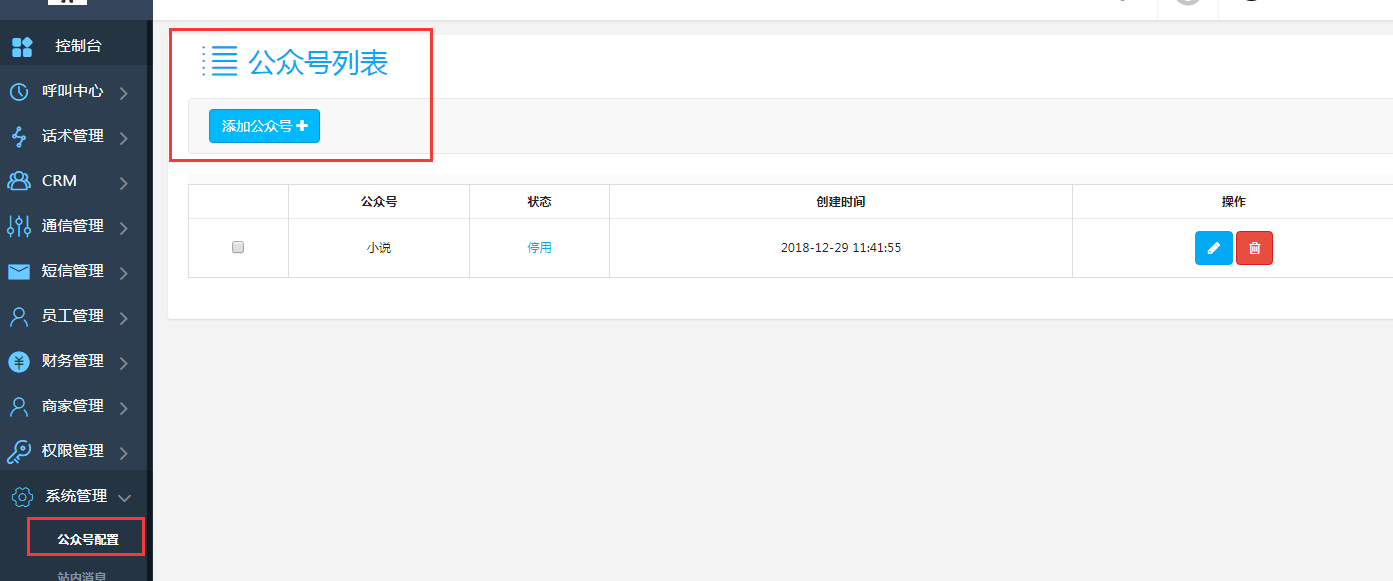 右側(cè)菜單-系統(tǒng)管理-公眾號配置,點擊進入公眾號列表界面
