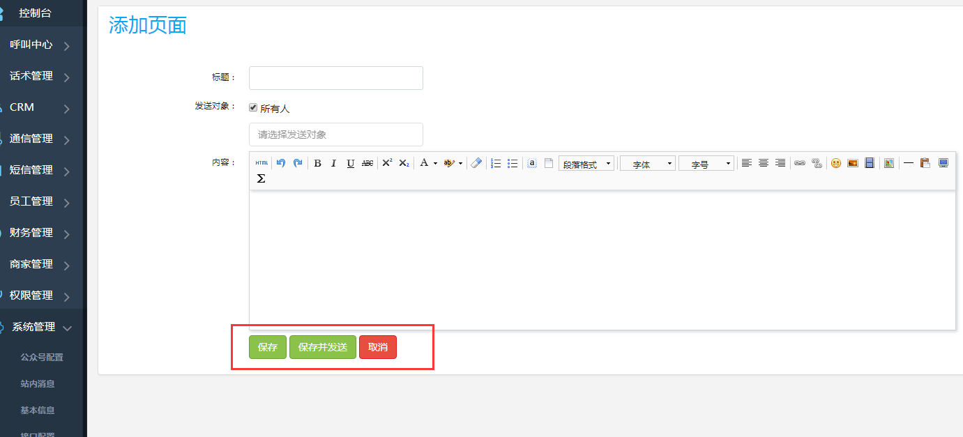 單擊“發(fā)布消息”按鈕,進(jìn)入發(fā)送站內(nèi)消息頁(yè)面,填寫(xiě)基本信息后,點(diǎn)擊“保存”按鈕即可。
