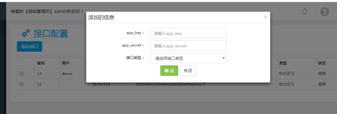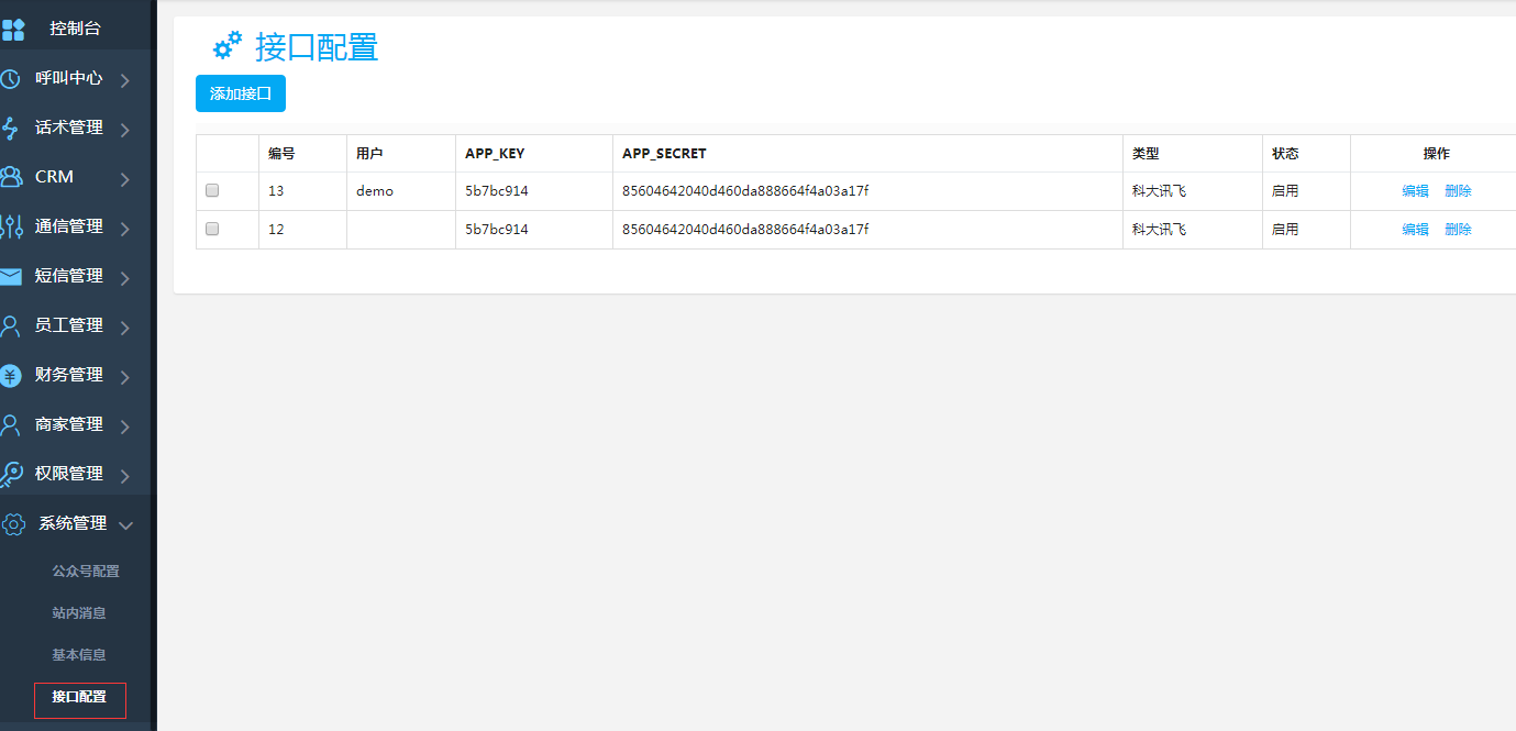 右側(cè)菜單-系統(tǒng)管理-接口配置,點(diǎn)擊進(jìn)入列表界面