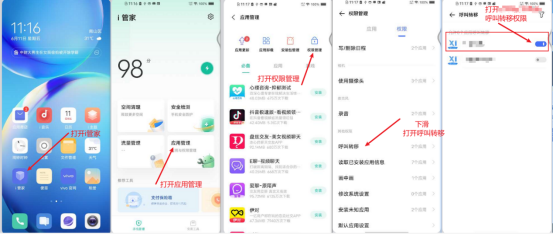 ①:(華為手機(jī):設(shè)置---應(yīng)用程序---應(yīng)用管理:話機(jī)通訊助手---權(quán)限(電話:其他電話權(quán)限:使用呼叫轉(zhuǎn)移和撥打電話 打開:應(yīng)用內(nèi)安裝其他應(yīng)用--【允許】-- 查看所有權(quán)限---使用呼叫轉(zhuǎn)移打開)