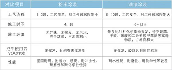 粉末涂裝與油漆涂裝的對比:
