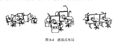 波浪式(如圖8-4所示)呼叫中心現(xiàn)場(chǎng)布局的主要優(yōu)點(diǎn)是: