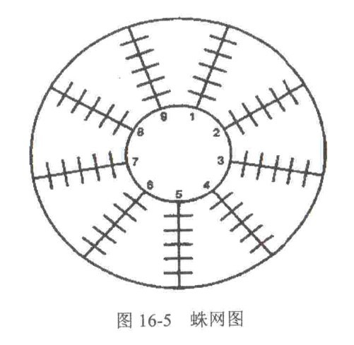 把表16-3中所得1分填入圖16-5所示蛛網(wǎng)圖最靠近圓心的地方、5分填入最靠近外圓的地方。