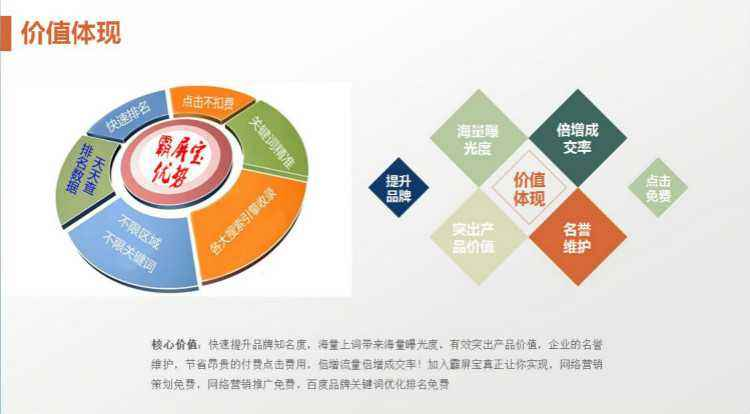 霸屏寶從成立之初就本著讓傳統(tǒng)企業(yè)在互聯(lián)網(wǎng)中奪得一席之地的初心,至今已服務(wù)了100多個(gè)行業(yè),多家企業(yè)客戶(hù),被客戶(hù)稱(chēng)為“企業(yè)可信賴(lài)的網(wǎng)絡(luò)營(yíng)銷(xiāo)軍師”。在事務(wù)上霸屏寶絲毫不大意,初度的客戶(hù)拜訪就具體的記載其相關(guān)的推廣訴求,依據(jù)要求進(jìn)行推廣方案策劃,意圖十分明確,那就是經(jīng)過(guò)最低的本錢(qián)將效益最大化。在推廣期間每天都會(huì)主動(dòng)跟客戶(hù)匯報(bào)進(jìn)度,與客戶(hù)交流網(wǎng)推的狀況。擔(dān)任、耐性、高效、科學(xué)對(duì)霸屏寶工作人員的基礎(chǔ)點(diǎn)評(píng),面積的品牌曝光給之后的引流埋下了伏筆。
