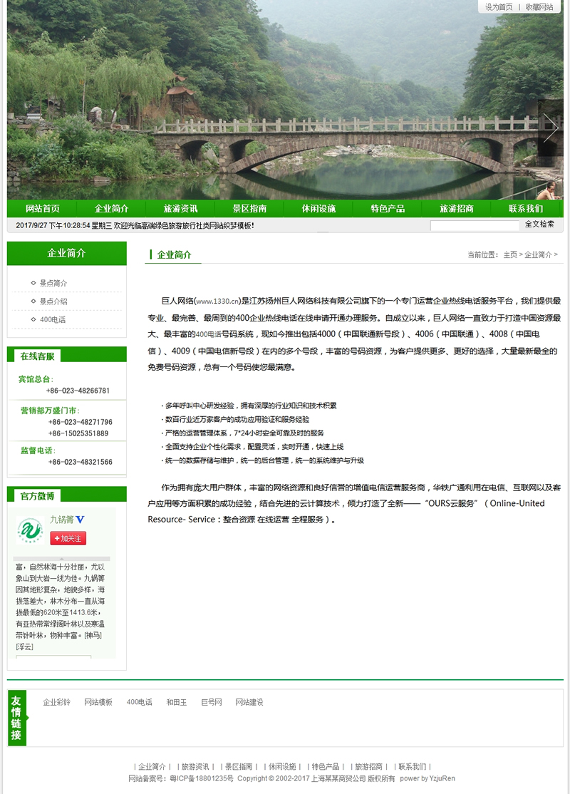 模板編號:     B1066 高端綠色旅游旅行社類網(wǎng)站織夢模板