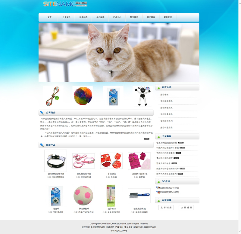 模板編號(hào):     S1355 戶外寵物飾品家養(yǎng)寵物玩具飾品建站模板