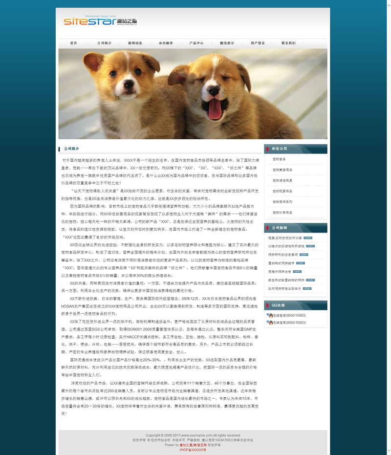 模板編號:     S1358 寵物用品商店寵物在線展示建站平臺