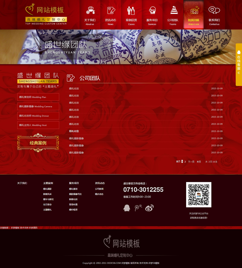 模板編號:     B1457 紅色大氣婚慶婚禮策劃公司網(wǎng)站織夢模板