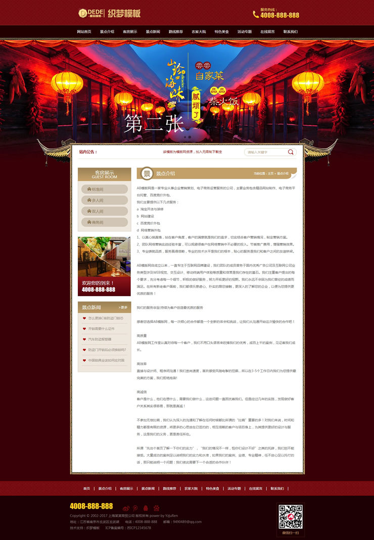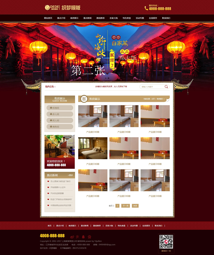 旅游住宿類織夢(mèng)網(wǎng)站源碼景點(diǎn)旅館農(nóng)家樂(lè)模板