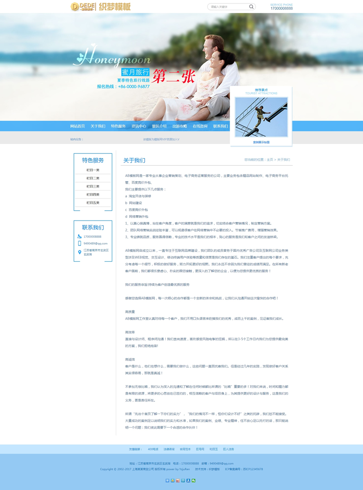 模板編號(hào):     B2248 蜜月旅行網(wǎng)站源碼景區(qū)旅游企業(yè)織夢(mèng)模板
