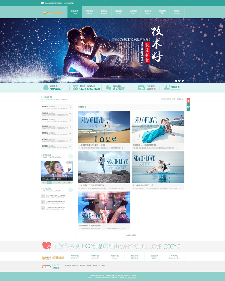 模板編號:     B2282 綠色寬屏大氣婚紗攝影影樓織夢模板源碼