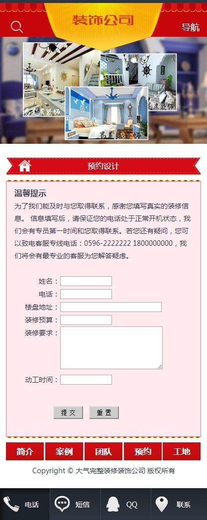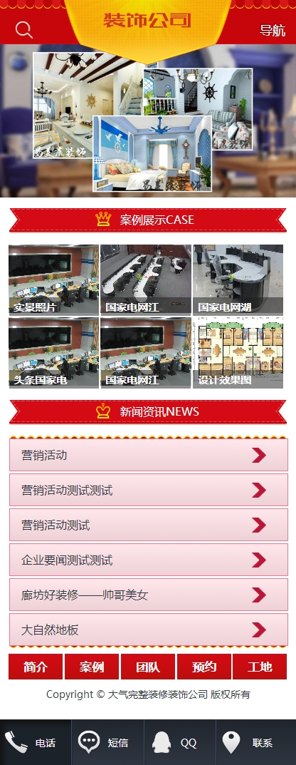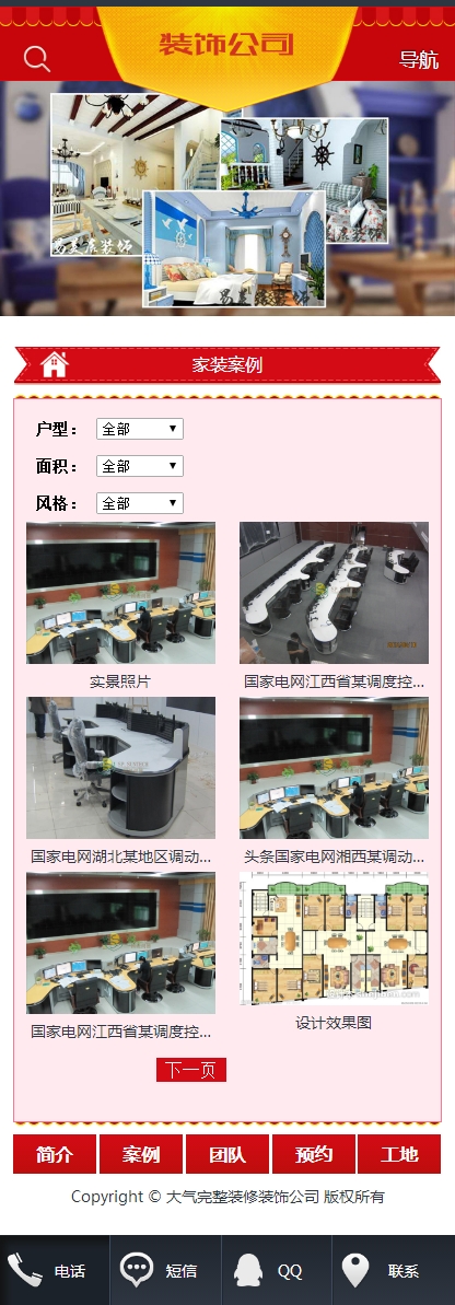 大氣完整裝修裝飾公司單獨(dú)手機(jī)端織夢(mèng)模板(帶篩