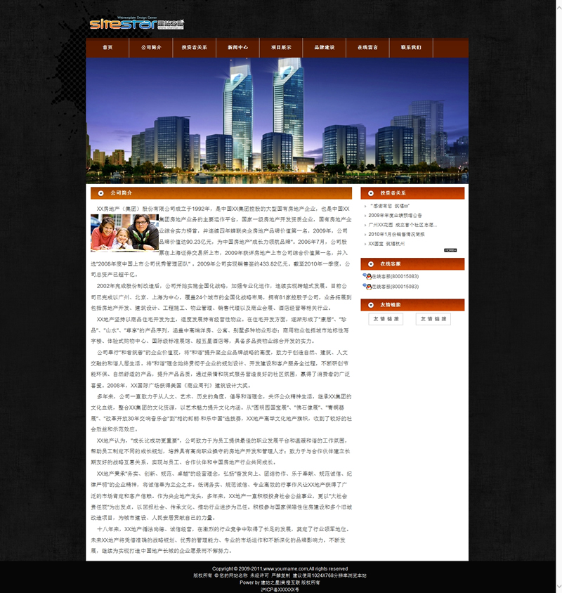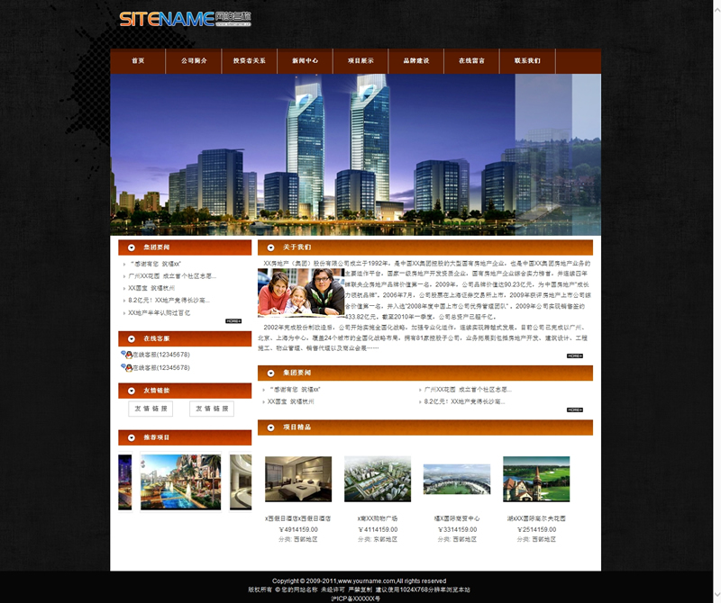 模板編號:     S1265 房地產(chǎn)開發(fā)公司企業(yè)建站模板