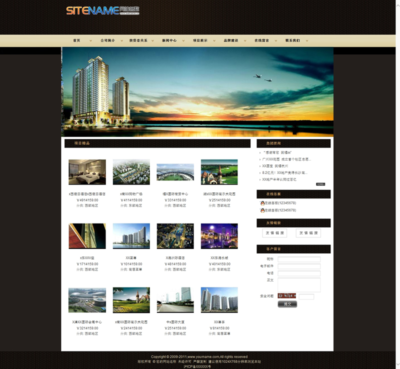 模板編號:     S1266 建筑房產(chǎn)地產(chǎn)開發(fā)商房屋租賃公司建站模板