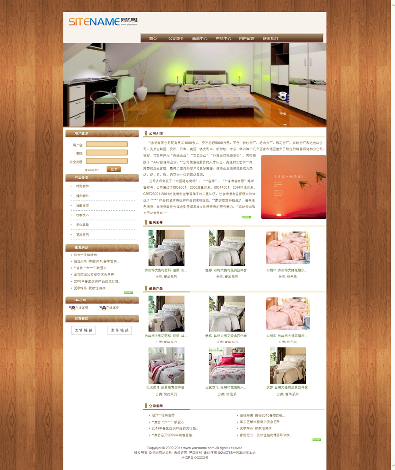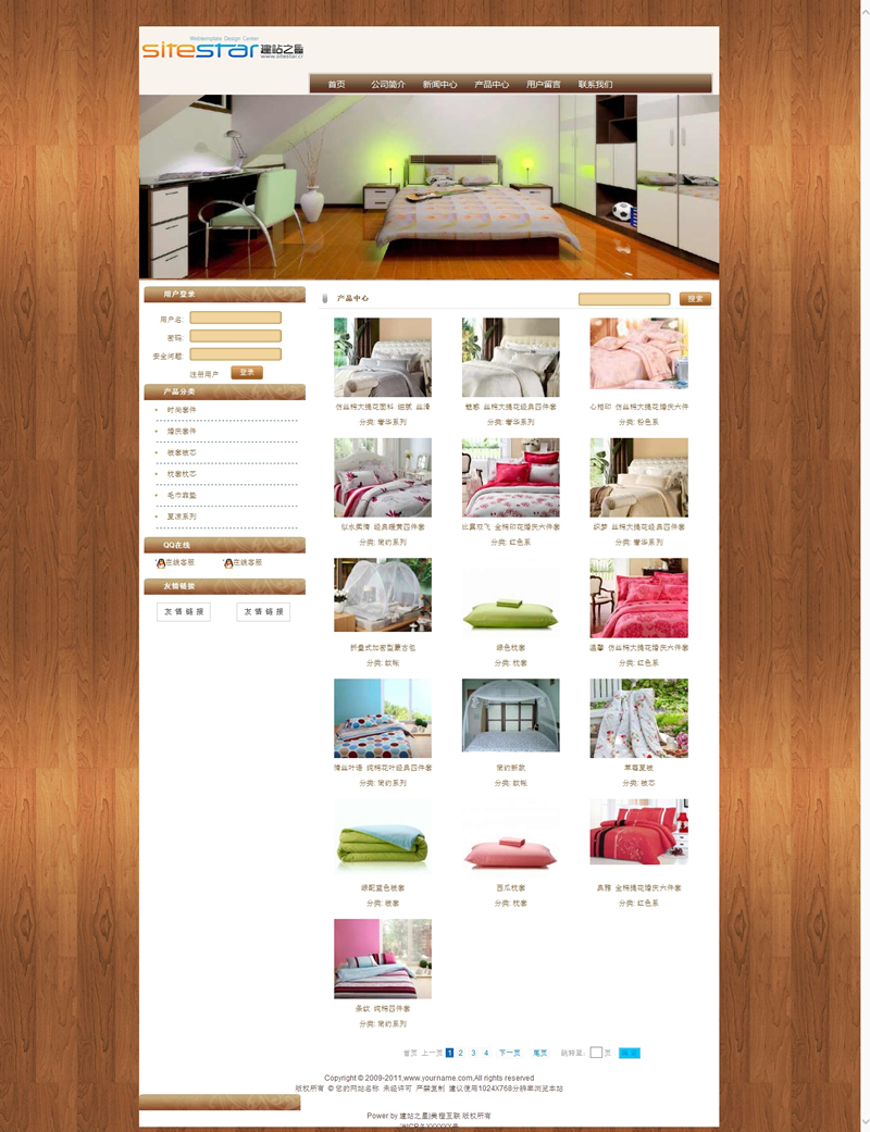 模板編號(hào):     S1301 溫馨家紡用品家居日常用品商城建站