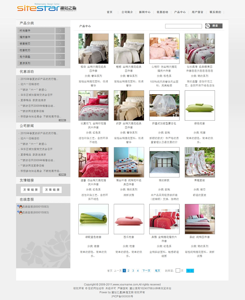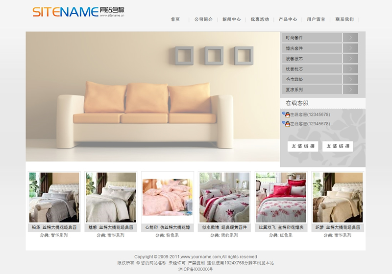 模板編號:     S1311 日常紡織用品家用床上用品百貨建站模板