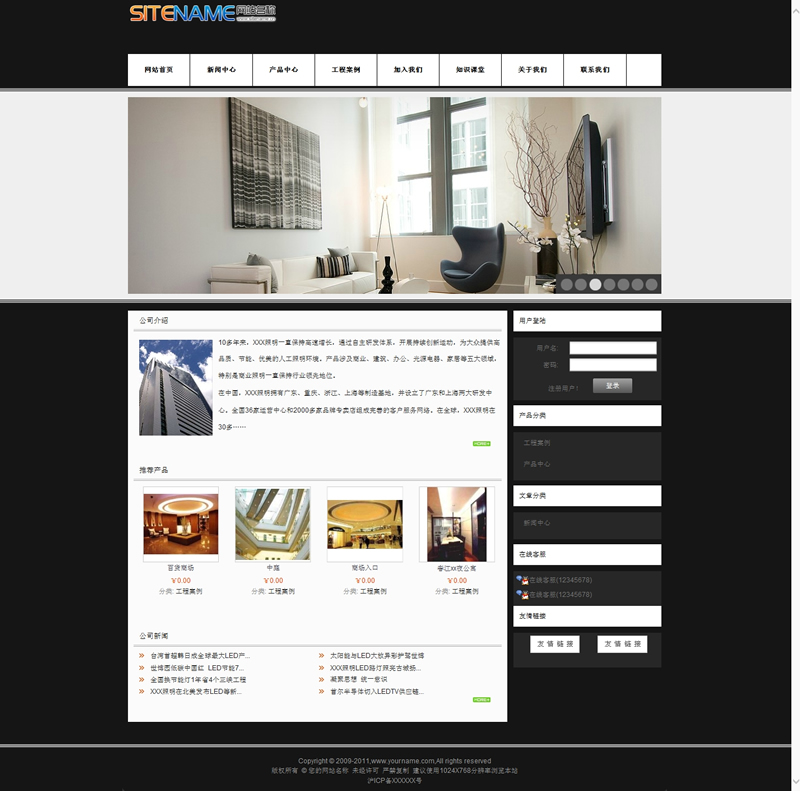 模板編號:     S1321 黑色燈具用品新式照明裝飾品建站模板