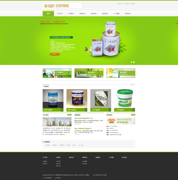 主頁 > 網(wǎng)站建設(shè) > 網(wǎng)站模板 > 建筑、裝修、電器、家居 > 一款綠色風(fēng)格家裝油漆類網(wǎng)站模板 織夢家裝通用