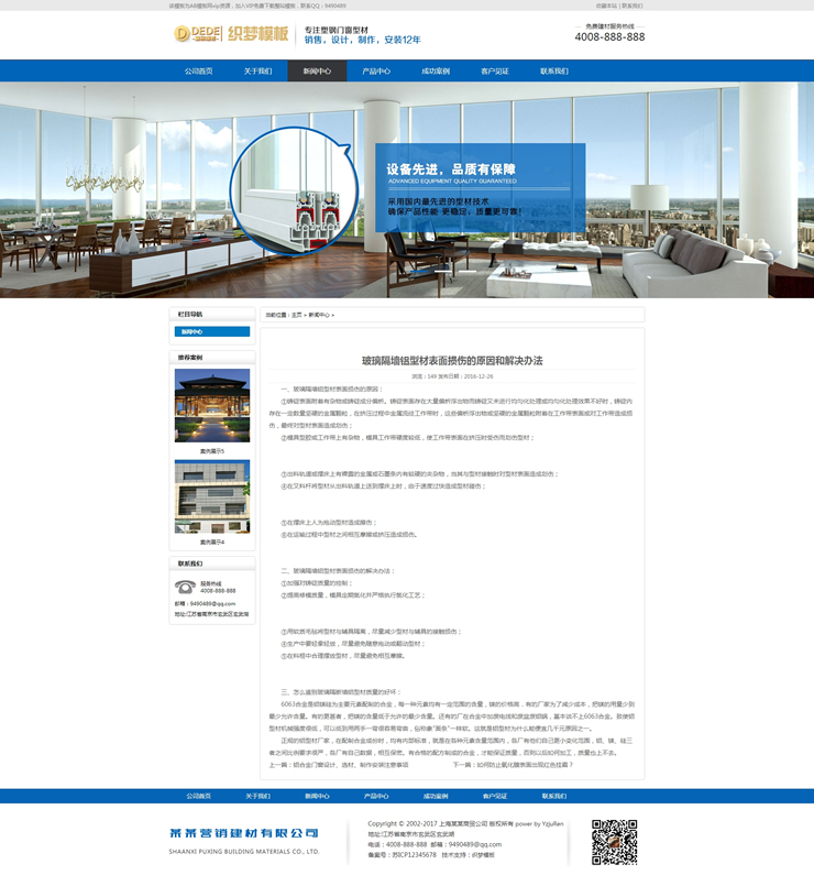 建筑建材網(wǎng)站源碼 鋁合金鋁材料織夢(mèng)模板(帶手