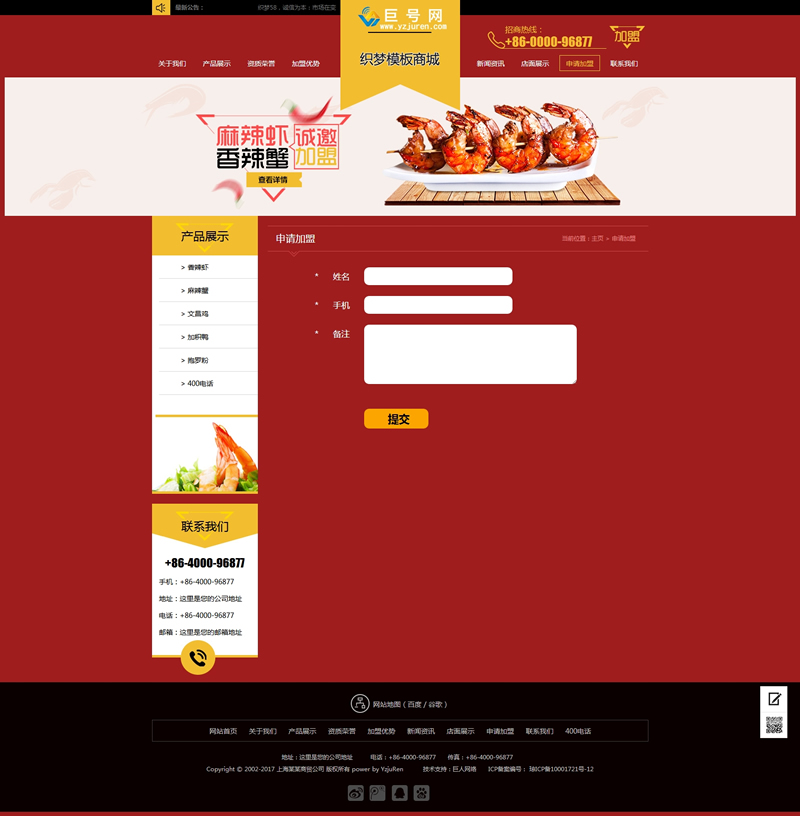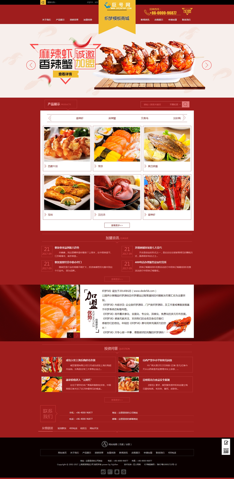 模板編號:     B1041 紅色招商加盟食品類企業(yè)網(wǎng)站織夢模板(帶手機端