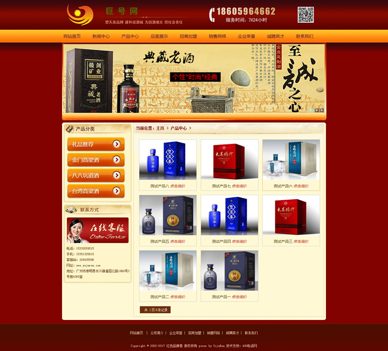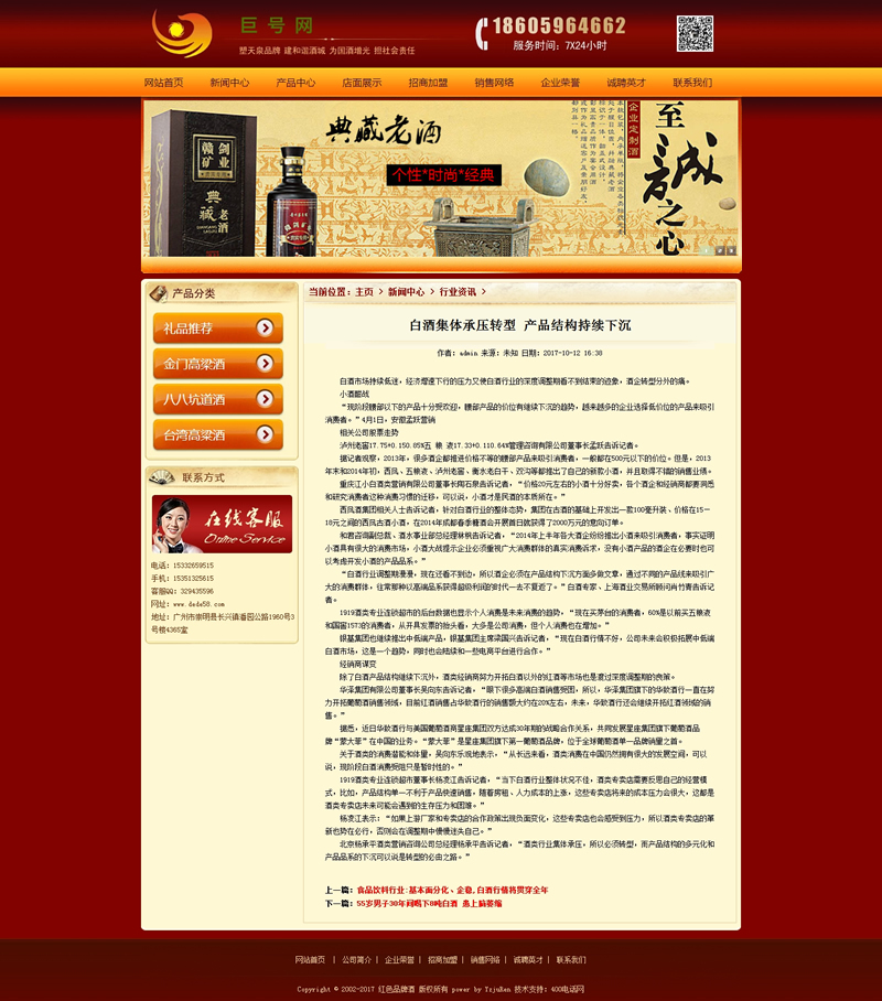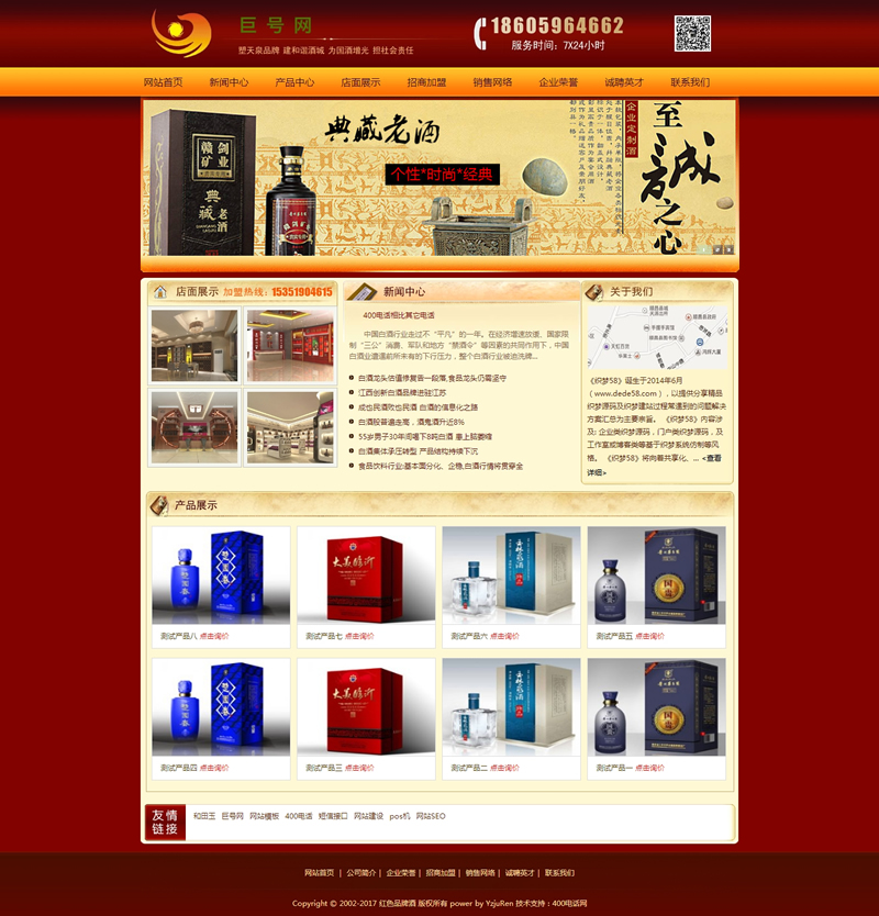 模板編號:     B1148 紅色品牌酒類食品行業(yè)公司織夢網(wǎng)站模板