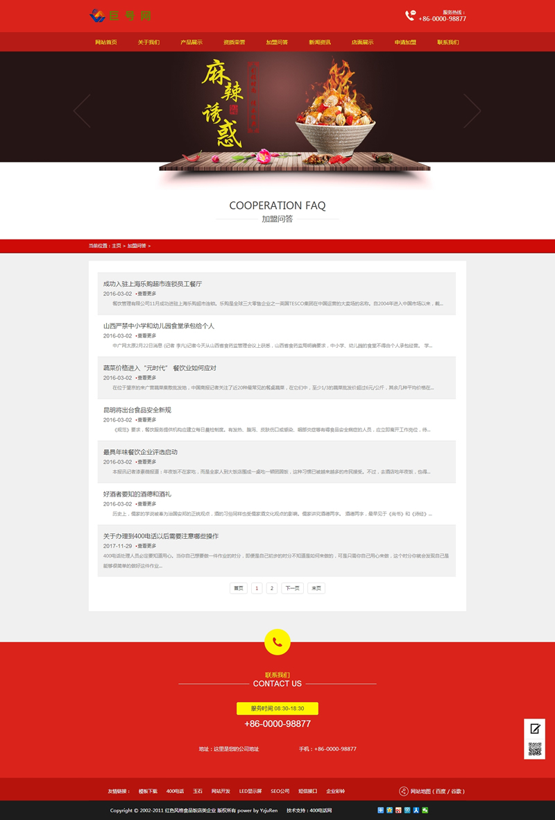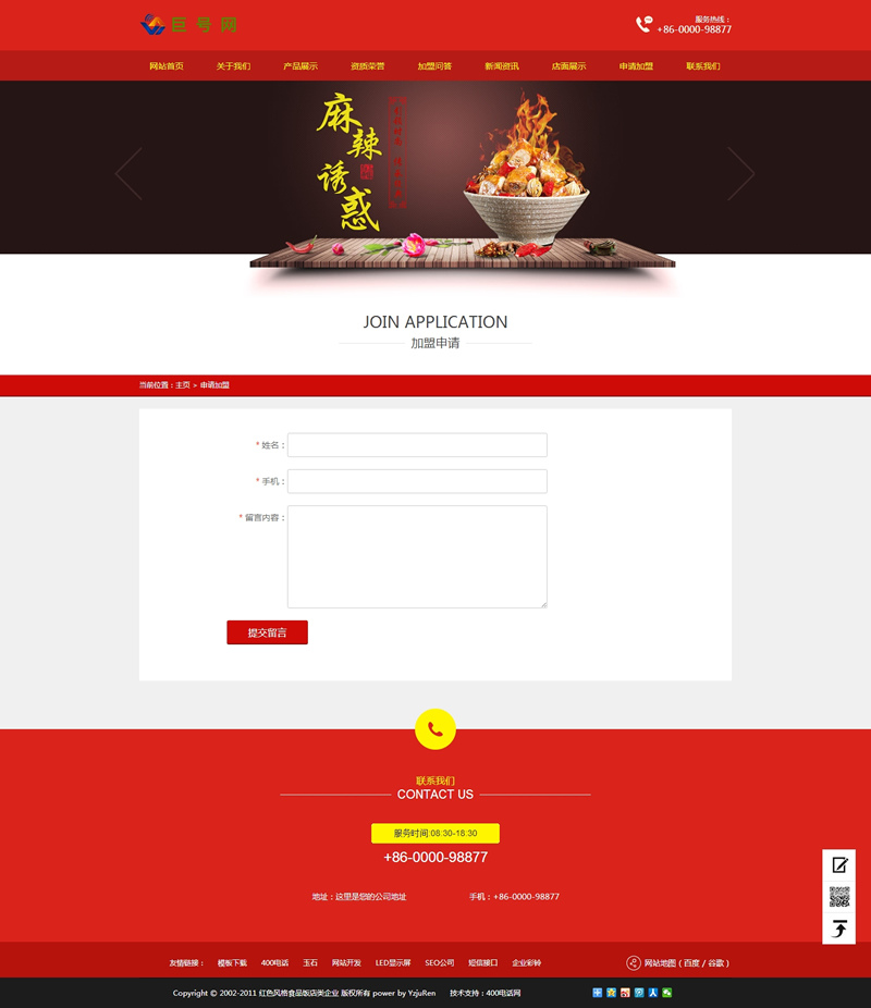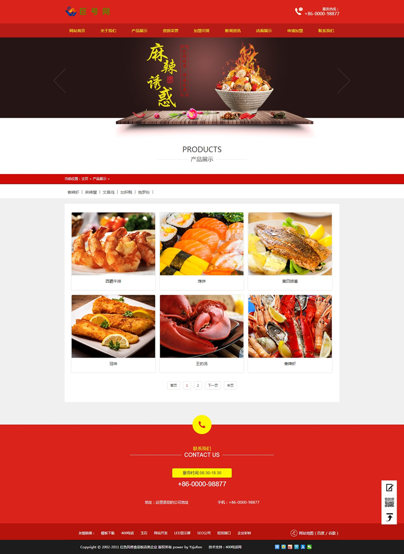 模板編號:     B1247 紅色風格食品飯店類企業(yè)織夢整站模板(帶手機端