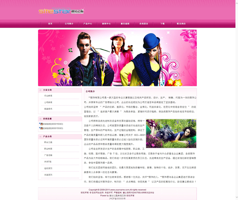 模板編號(hào):     S1023 服裝類衣帽類服務(wù)飾產(chǎn)品公司建站模板