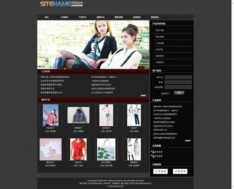 模板編號:     S1024 灰黑色衣服服飾專用建站模板