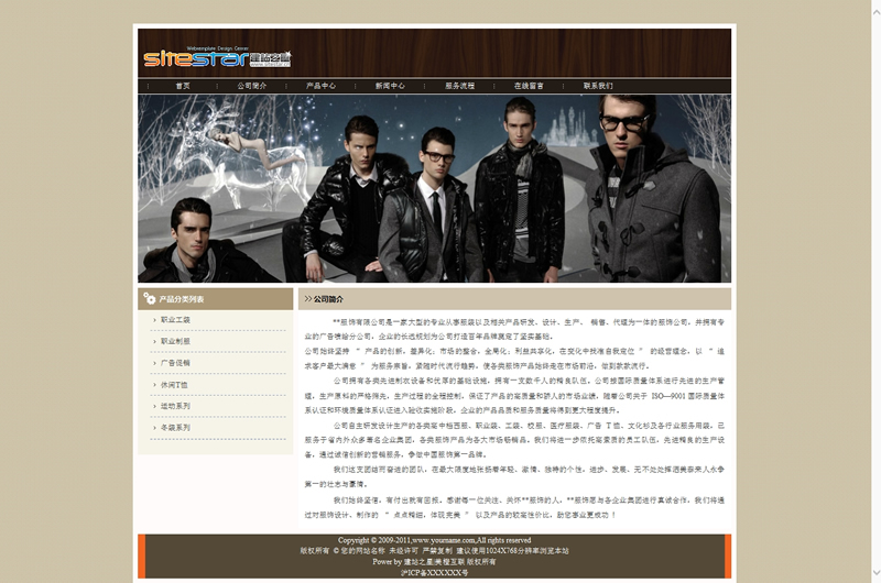 模板編號:     S1028 服裝式樣男裝系列服飾類產(chǎn)品網(wǎng)站建站模板