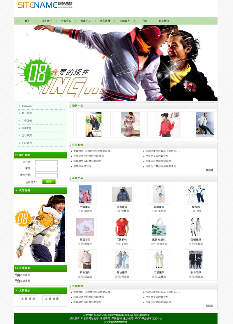 模板編號:     S1031 清淡綠色服裝服飾類商品建站企業(yè)模板