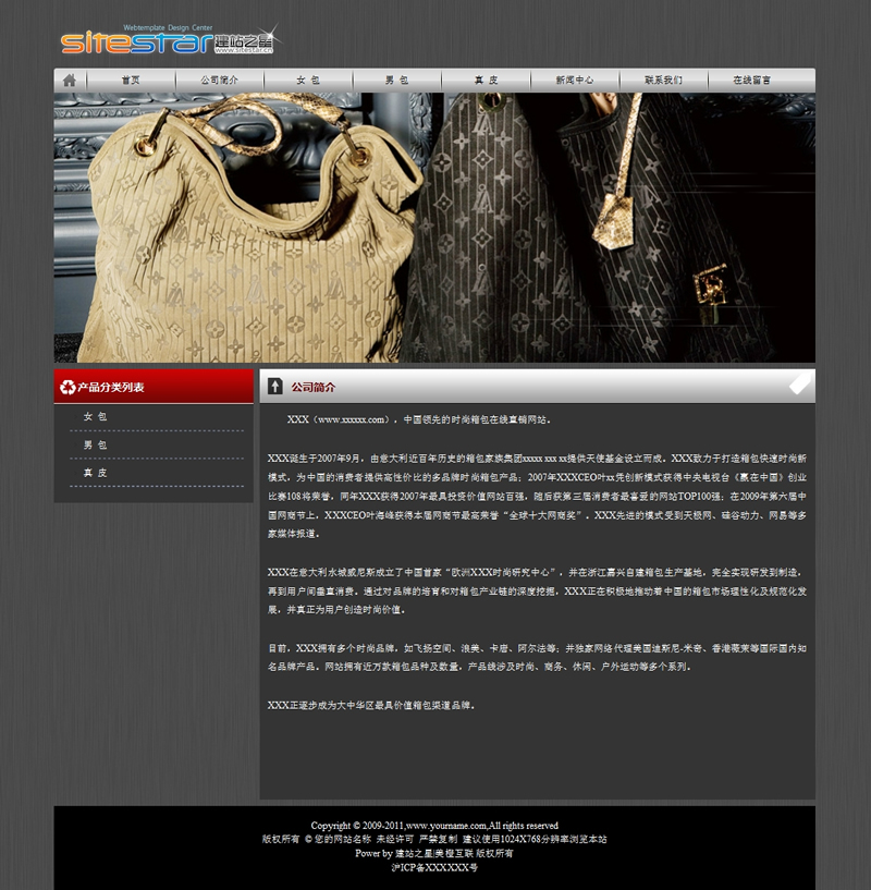 模板編號(hào):     S1040 精品皮具用品各種小商品建站模板