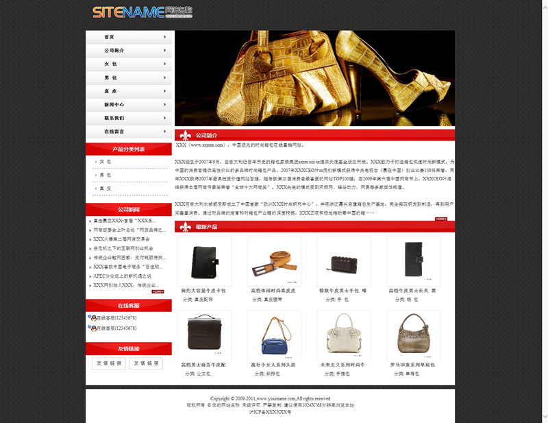 模板編號:     S1045 皮鞋皮包皮具各類用品網(wǎng)站建站模板