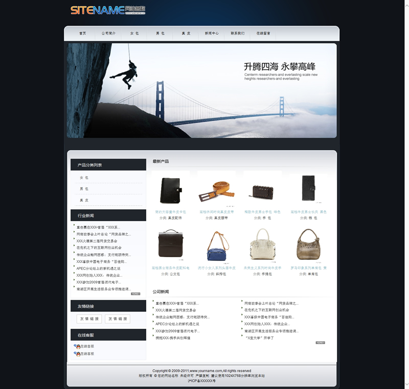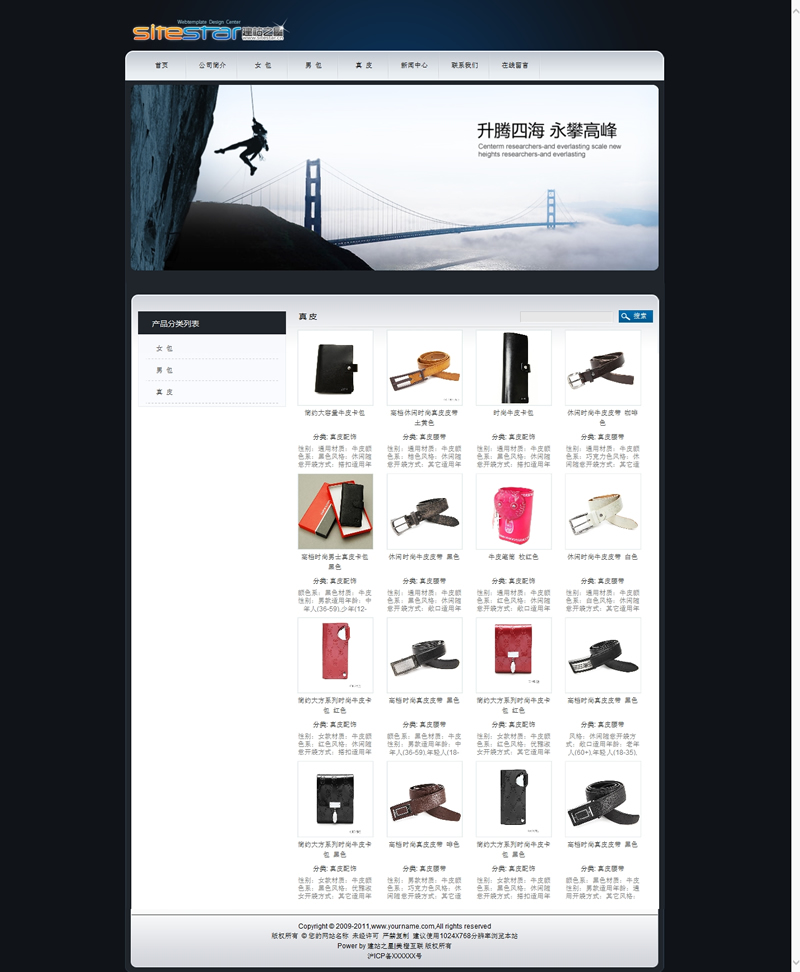 模板編號:     S1049 皮包皮帶包裝等包制小商品網(wǎng)站建站模板