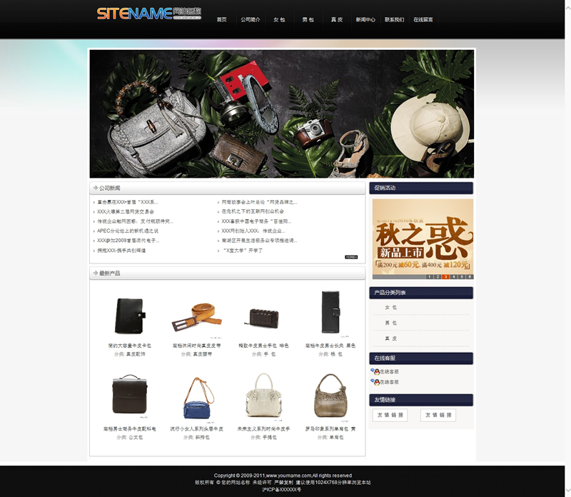 模板編號:     S1051 皮具皮革產品皮制用品類網站建站模板