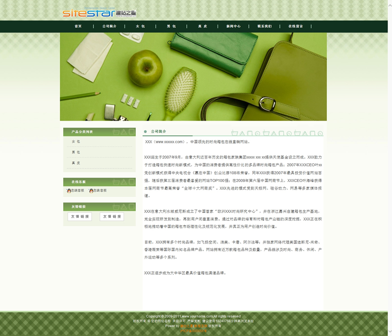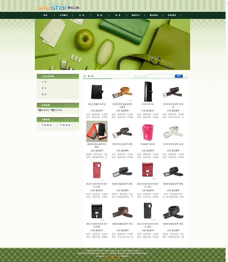 模板編號:     S1052 草綠色皮具用品常用網(wǎng)站建站模板