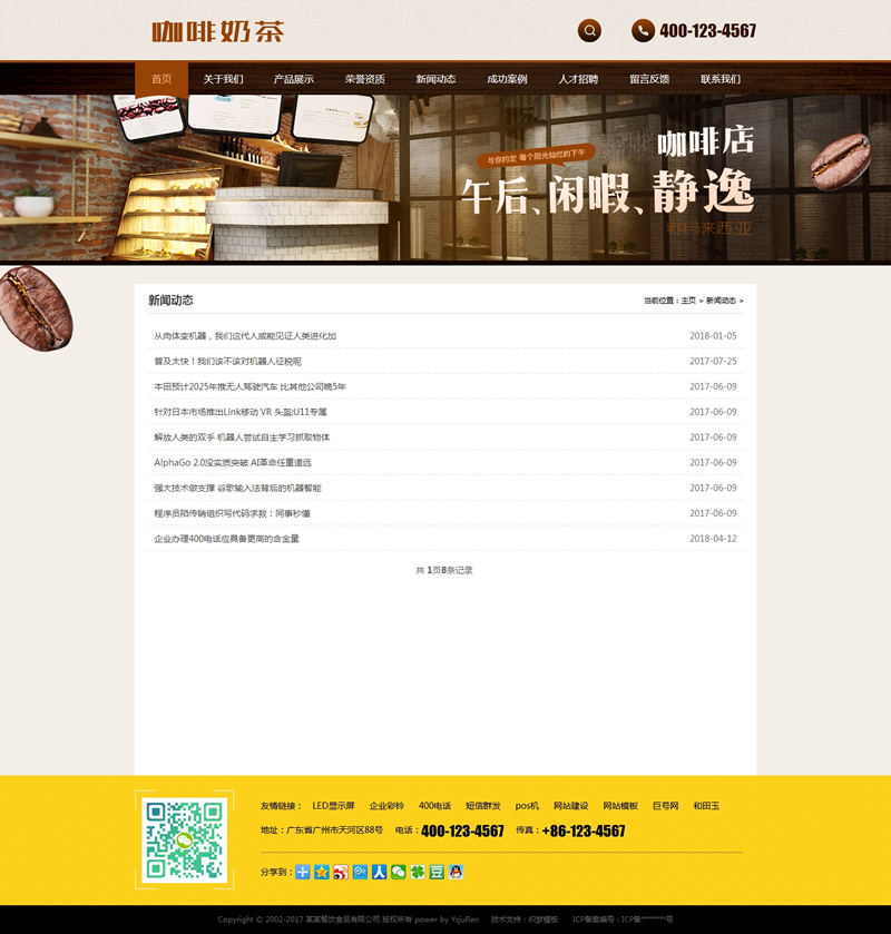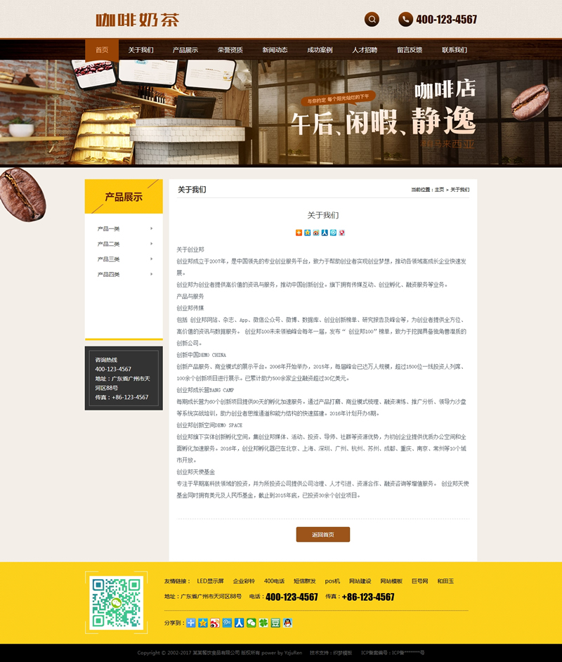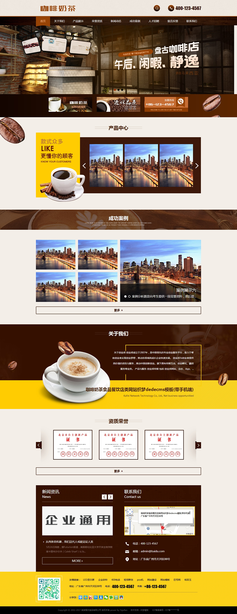 模板編號:     B1366 咖啡奶茶食品餐飲店類網站織夢dedecms模板(帶手機