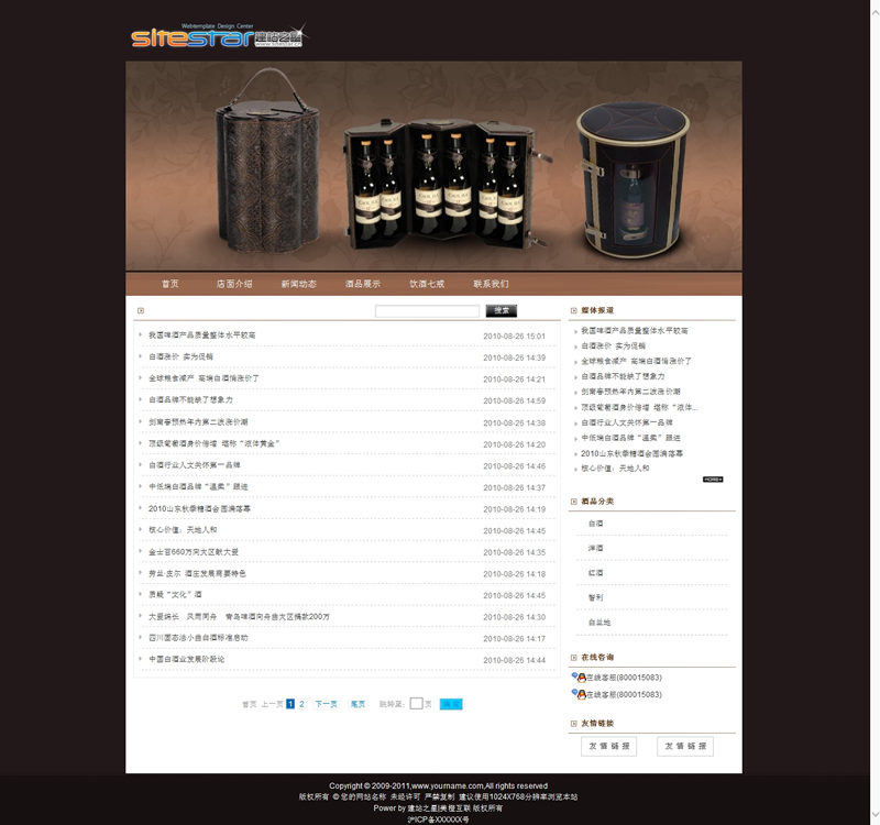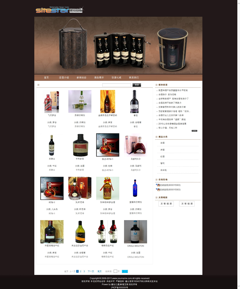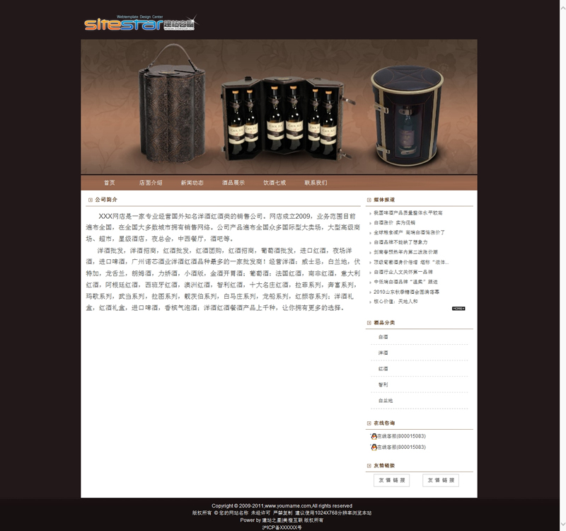 模板編號(hào):     S1493 食品各種酒類白灑葡萄酒企業(yè)建站模板