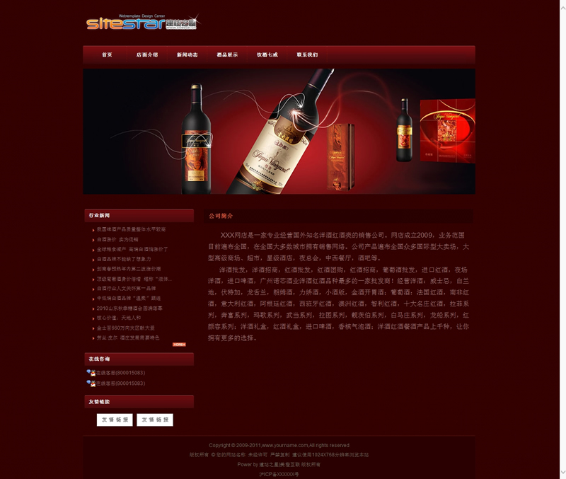 主頁 > 網(wǎng)站建設(shè) > 網(wǎng)站模板 > 酒類、食品、服飾、服務(wù) > 高端紅酒系列各類高檔飲品酒公司建站模板
