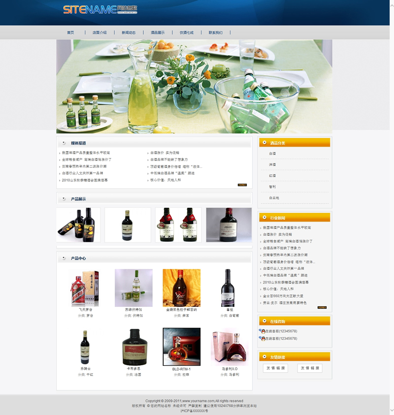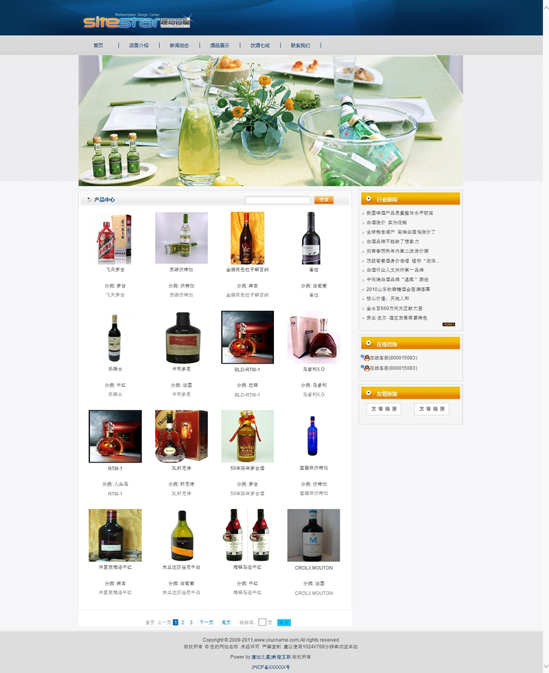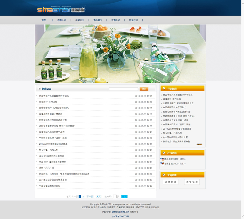 模板編號:     S1504 清爽型酒類飲料方便飲品企業(yè)宣傳建站模板