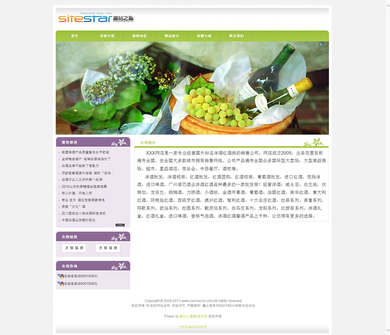 模板編號(hào):     S1505 綠色清新自然酒品食品級(jí)建站企業(yè)網(wǎng)站模板