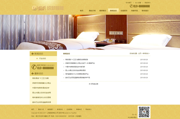 主頁 > 網(wǎng)站建設 > 網(wǎng)站模板 > 酒類、食品、服飾、服務 > 大氣黃色酒店套房行業(yè)企業(yè)織夢模板